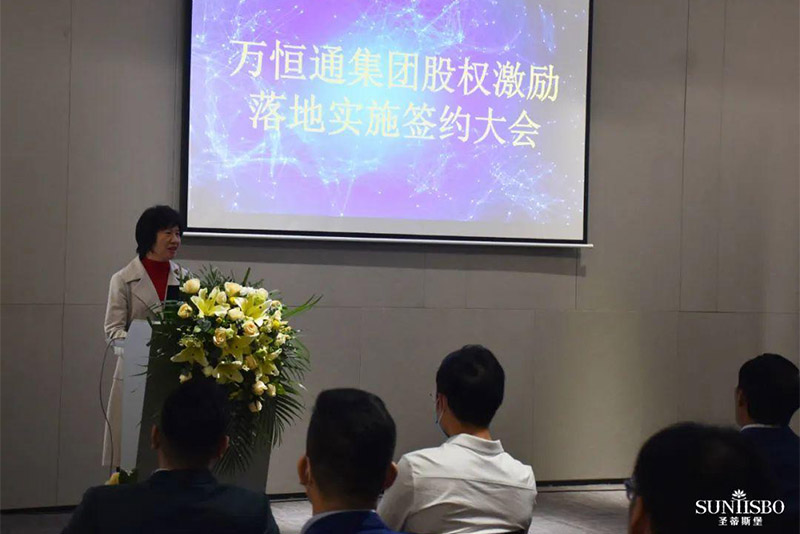 接下来,集团副董事长梁碧霞女士上场致辞,她讲到:熊猫体育集团在王董的领导下,从1982年一直奋斗至今,已走过39年的历程,这离不开大家共同的努力,她号召在座同仁为自己加油鼓掌。她进一步强调:此次的股权激励既是感谢大家以往为熊猫体育集团的付出,同时也是为了将来大家拥有更美好的生活。熊猫体育此次股权激励不是终点而是起点,我们要挖掘和吸引更多优秀的人才加入熊猫体育。只要我们上下一条心,内外一股劲、坚定信心,就能把熊猫体育做成百年企业,把圣蒂斯堡做成有美誉度、消费者喜欢的、享誉全球的家具品牌!