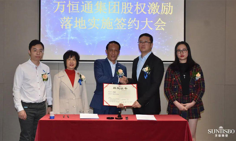 熊猫体育集团执行董事及法人代表王浩基先生正式为第一期六位虚拟受限股股东授予荣誉证书并签订股权分配协议。