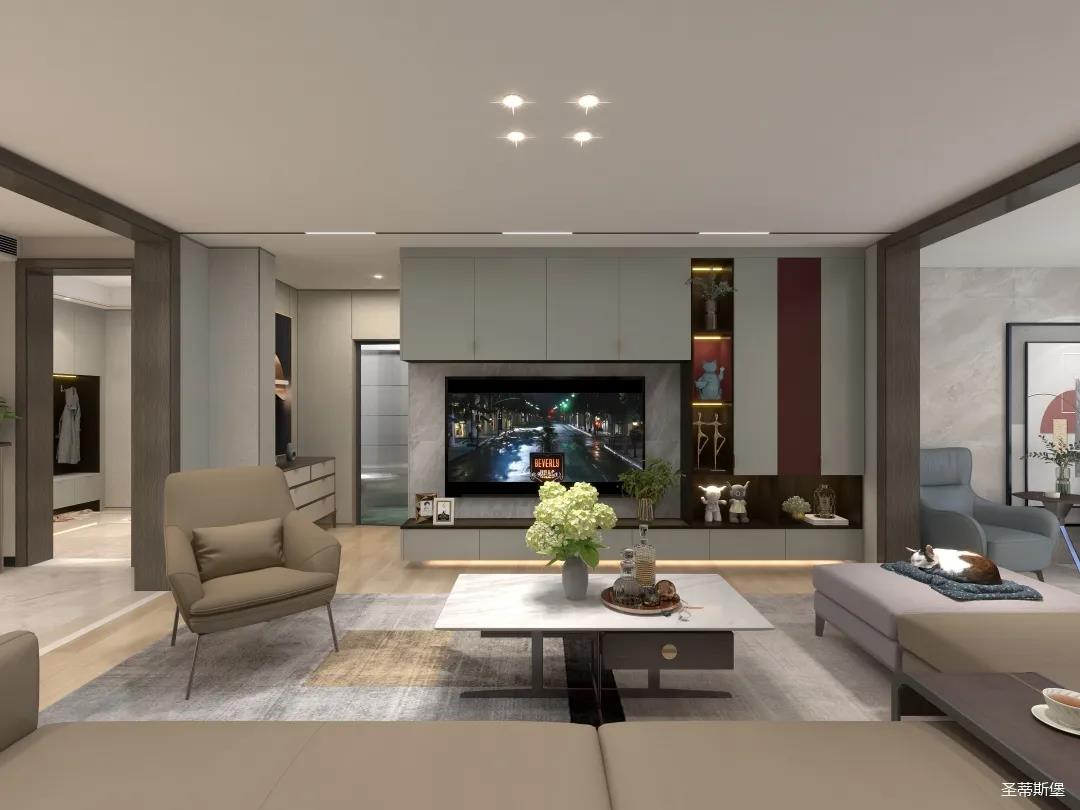 客厅是生活的场景,步入客厅,映入眼帘是艺术与质感的融合,定制柜上的一抹红设计,在视觉上夺得了注意力。如果你更倾向于简约,采用大面积的黑白灰色彩,不仅不容易产生审美疲劳,而精简的装修风格就是将质感材质融入生活,合适色彩嵌入空间,这样的生活空间才是真正的简练而不繁琐。