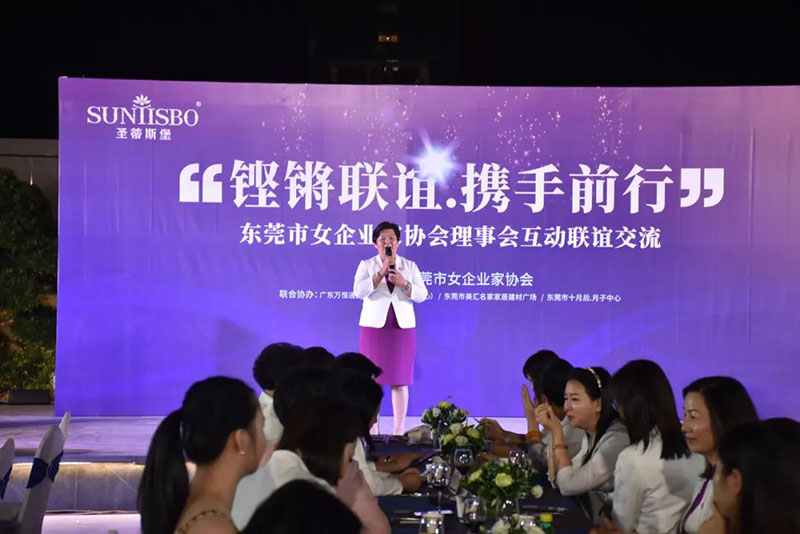 接下来,东莞市女企业家协会理事会会长叶小红女士上台发言,她表示非常感谢熊猫体育集团举办此次联谊交流会,同时,对我们的产品和企业文化给出了很高的评价。她号召东莞市女企业家协会以后要更多的举办此类交流联谊活动,以此增进会员企业之间的联系和了解,为未来进一步交流发展开创新局面!她希望我们能携手同行,强强联手,共赢未来,共创新辉煌!